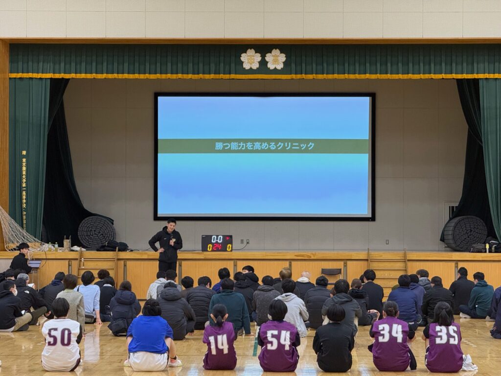 今年度、新たな取り組みとして、東京医療保健大学女子バスケットボール部ヘッドコーチ(パリオリンピック女子日本代表監督)である恩塚亨氏に全面的なご協力をいただき、「強化育成の現場で指導するコーチ自身のレベルアップを図り、選手育成に役立てること」を目的としたコーチクリニックを通年で開催いたしました。
